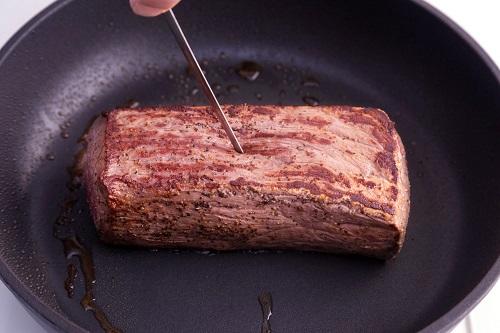 普通は、肉を買ってきたら調理する直前まで冷蔵庫に入れておく。薄切り肉で炒め小物や煮物をする場合は、それでOKなのだが、厚みのある肉や塊肉を焼く場合には、扱いが異なる。後者の場合は、「調理する30分前には冷蔵庫から取り出し、常温で置いておく」が正解なのだ。
