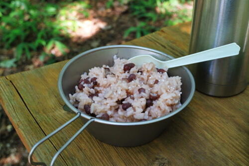 - シェラカップで炊飯する際は、米の吸水はしっかりと行おう。吸水が不十分だと、米に芯が残ってしまうことがあるためだ。
