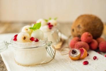 作り方はカンタンで、皮を剥いて種を取り除いたライチと、一口大にカットしたパイナップルとバナナをミキサーにかけるだけだ。牛乳や豆乳を入れてもよいが、ココナッツミルクを使うと、さらにトロピカルな風味が高まる。子供から大人まで飲みやすい味わいで、しっかり冷凍されたライチ、パイナップル、バナナを使って作るとシャーベットにもなる。フレッシュなミントの葉を載せると、爽やかさもプラスされ、肉料理などのあとのデザートにもぴったりだ。