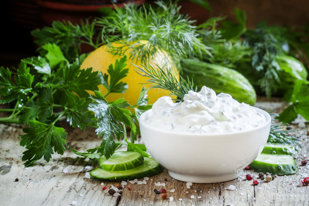 夏におすすめしたいのが、さっぱりさわやかなサラダだ。トマトやきゅうり、オニオン、アボカドなどの具材を食べやすい大きさに切って、ニンニクのすりおろしとレモン果汁、塩胡椒などで調味した水切りヨーグルトと和えるだけでOK。