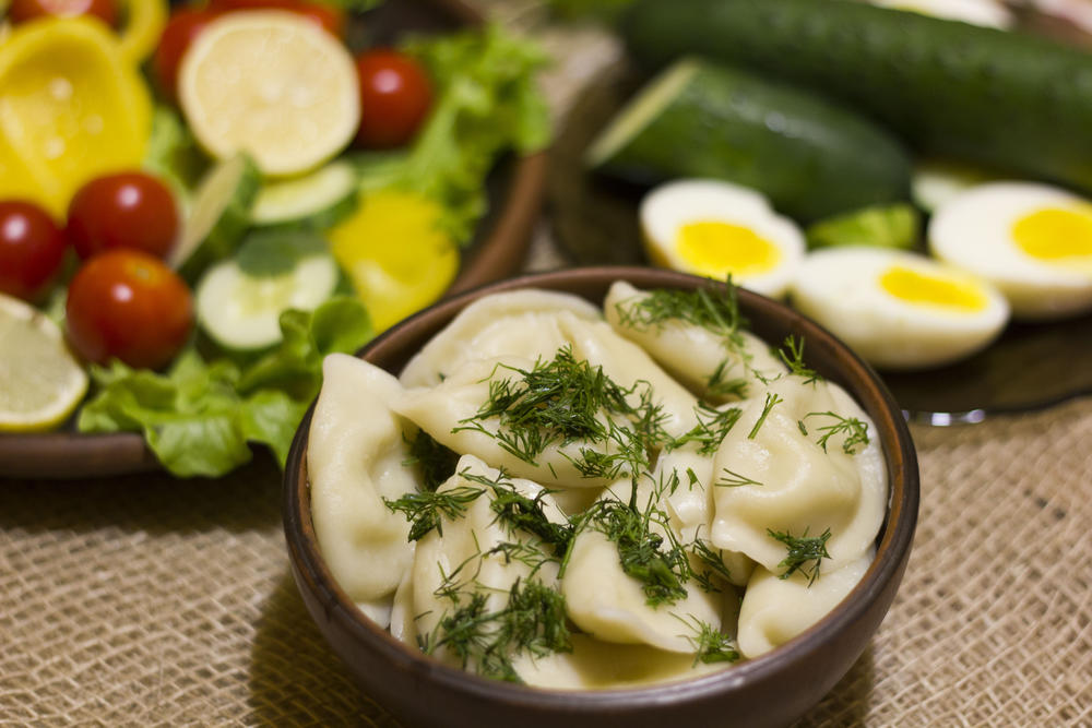 ズッキーニやナス、トマトなど好みの野菜を細かく切り、火を通したら水切りヨーグルトと和えて塩などで味を調整し、皮に包んでいこう。ディルなどのハーブを入れると、よりさわやかになる。フライパンに油を加えて熱し、餃子を並べ入れて焼けば完成だ。