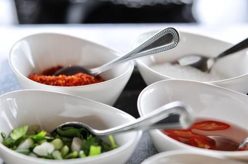 ナムプラーは塩辛さをプラスする調味料。粉唐辛子は辛味をプラスする調味料。砂糖は辛味の緩和やコク出しに有効。ナムソムは酸っぱさやこちらもコク出しの効果が期待できる。
