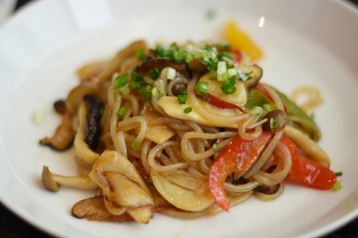 パスタと比較すると歯ごたえがやや物足りないかもしれないが、こんにゃく芋が原料のしらたきは、小麦が原料の中華麺やパスタ、米が原料のビーフンより、ぐっとカロリーも糖質も低い。低カロリーなのに満腹感が高い稀有な素材だ。
