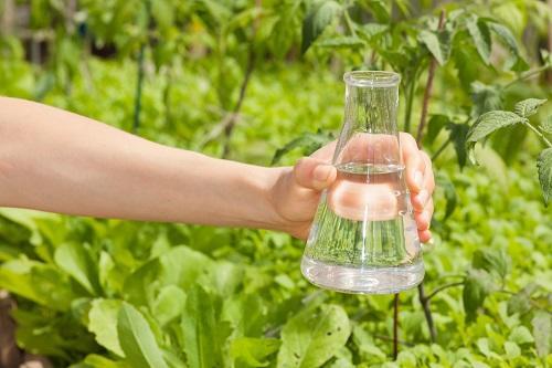 ツルムラサキは生育が旺盛で、養分と水分を吸ってどんどん大きくなるので、2週間に1度くらいの割合で液肥を水やりのタイミングでやるといい。