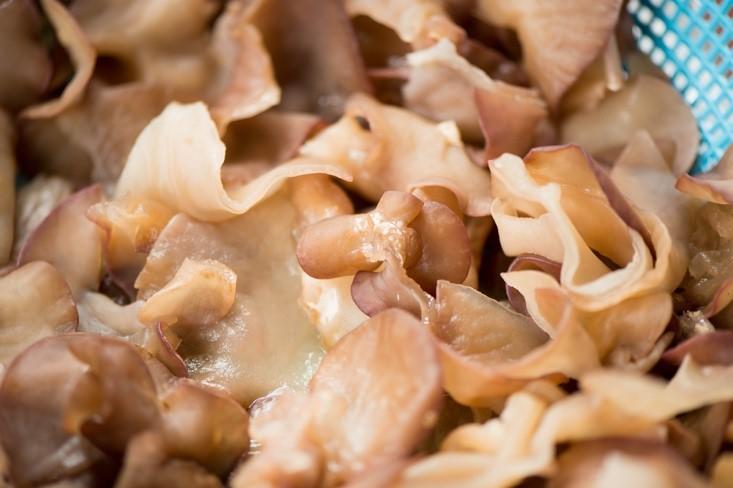 きくらげは、北海道から九州、沖縄に至るまで、日本全国に自生しているキノコなのだが、現在市場に出回っているものは、ほとんどが栽培ものだという。つまり、椎茸やしめじなどと同じ。けれども、一般的に身近なスーパーや八百屋の店頭で生のきくらげを見かけることはあまりない。椎茸、しめじ、なめこ、えのきといったキノコ類に比べると、生のきくらげを使った料理が食卓に上る頻度は高くないからかもしれない。