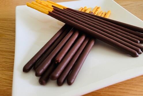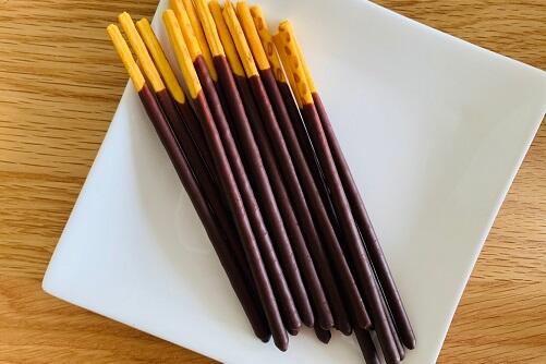 ポッキーの美味しさは、何といってもプレッツェルとチョコレートの相性にあるといえよう。カリッとした食感とちょうどよい甘みとのハーモニーがもう1本、もう1本とあとを引く。甘すぎないところも大人に嬉しい。さらにスリムな棒状なので、非常に食べやすく、手や口周りが汚れる心配も少ない。