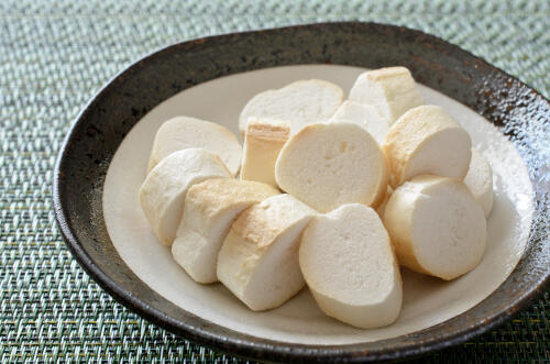 麩菓子は食卓に出てくる「お麩」と同じものを原料に作られたお菓子である。いずれも小麦粉を練ることで抽出されるグルテンを焼いて作られ、麩菓子はそこにシロップを塗って乾燥させたものだ。麩菓子にはさまざなな形状があるが、1本70gの場合、カロリーは約220kcal。食べごたえがなく腹持ちしないわりに高カロリーであることがわかる。お麩に塗られる黒糖などのシロップのカロリーも高いが、小麦粉を原料としているためお麩自体のカロリーも高いのだ。空腹時だと2本、3本と食べ進めてしまう可能性があるが、ダイエット中の人は食べすぎに注意したい。