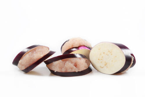 なすとひき肉のはさみ焼きを作るときの一番のポイントは、ひき肉となすをしっかりくっつけるということ。しっかりくっつけておかないと、焼いている最中に分離して見栄えが悪くなってしまうので注意が必要だ。なすは輪切りにしてから水にさらしてアクを抜き、水気をふき取ってからひき肉をはさむ面に片栗粉をまぶす。片栗粉をまぶしてからひき肉をはさむことで片栗粉が接着剤の役割をしてくれるので、分離せずに焼けるのだ。