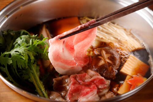 牛肉をメインで使う和食料理。白菜やきのこ類を使って、ボリュームを出そう。ホームパーティーであれば、カセットコンロに鉄鍋を乗せ、ゲストと一緒に鍋を囲むのも楽しい。