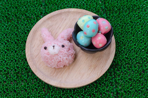 うずらの水煮をめんつゆやしょう油漬けにして30分から1時間程度置くと、ほんのりと茶色に色づく。クマなどを作りたいときには、表現しやすい色となる。はじめから燻製のうずら卵を使ってしまうという手軽な技もある。