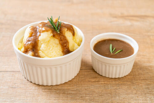 お伝えしたように、グレイビーソースは肉料理との相性はもちろんよいが、マッシュポテトにかけても絶品の味わいになる。肉は使わないがグレイビーソースを作りたい、という場合は「グレイビーソースパウダー」を使おう。パウダーを水で溶かして煮るだけで、追加の材料も不要だ。大型スーパーなどで手に入るのでチェックしてみよう。