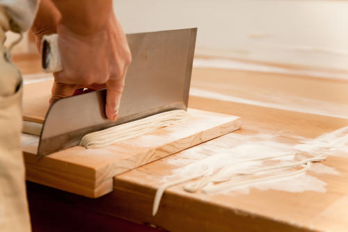 家で蕎麦を打つ場合は、扱いやすい二八蕎麦がおすすめ。2~3人前なら、蕎麦粉160g、小麦粉40g、水90gを用意しよう。必要な道具は、打ち台、麺棒、ボウル、まな板、包丁。もちろん蕎麦をこねるためのこね鉢や麺を切る際に使うこま板など、蕎麦打ち用の道具を揃えてもいいが、なくてもまずは、自宅にあるもので代用は可能。
