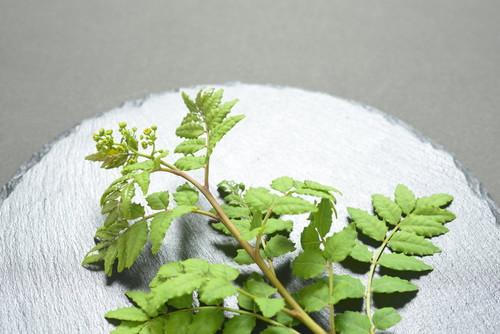 木の芽(きのめ/このめ)とは、ミカン科の山椒の若芽のこと。古くから料理のあしらいとして使われており、3~4月に出回ることから「春の訪れ」として用いられてきた。また、料理の味付けにも使われることが多く、木の芽味噌・木の芽田楽・木の芽和え・木の芽焼きなどして食べられている。柑橘類のような爽やかな香りが特徴的で、山椒特有のかすかなスパイス感が食欲をそそる。