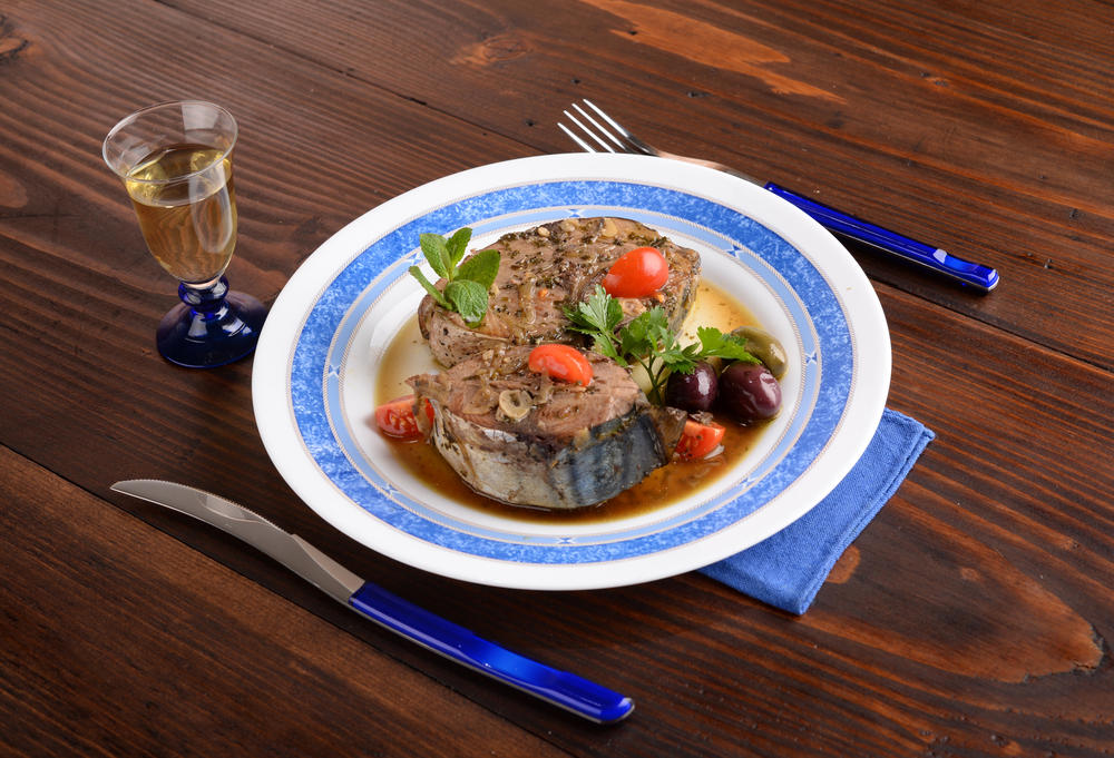オリーブオイルとの相性も良い。魚を焼くときは前もって塩で締めておくのだがかつおは水分が少ないので調理する直前に塩胡椒で下味をつける。フライパンにオリーブオイルとスライスしたにんにくを入れて火にかけ、薄く小麦粉をはたいたかつおを入れて両面をこんがりと焼く。白ワインを振りかけ、蓋をして蒸し焼きにする。仕上げは醤油でもいいし、トマトやオレガノ、バジルでイタリア風にしてもいい。