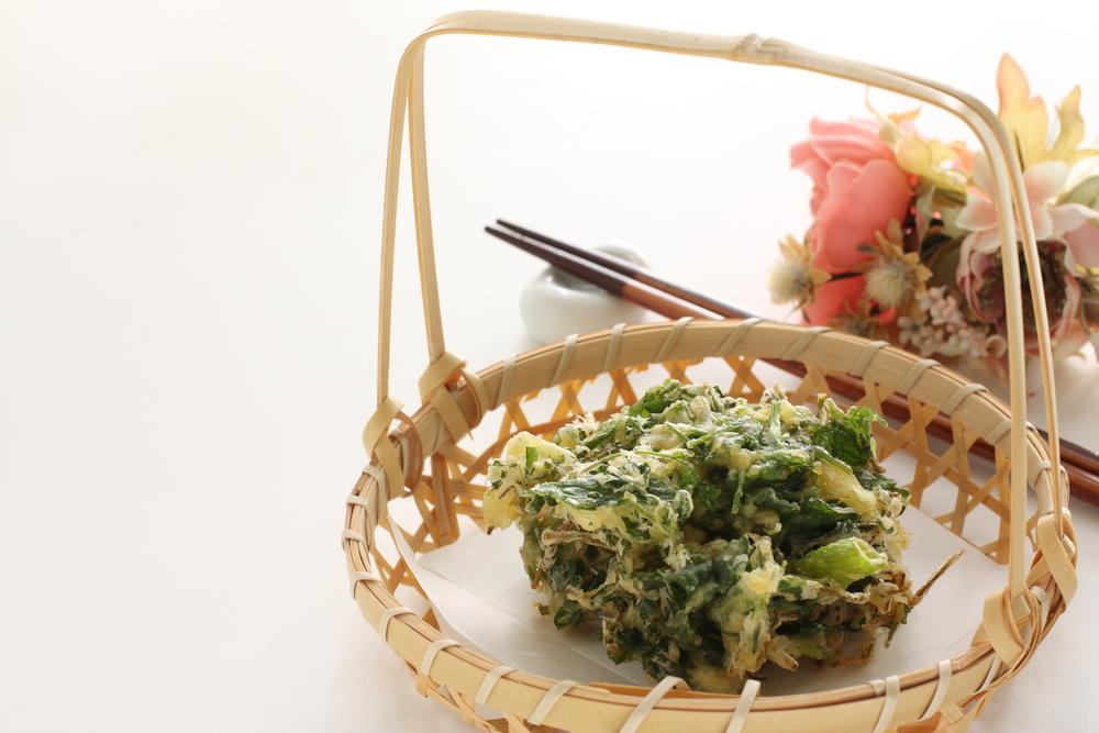 春から初夏に生垣から出る新芽は、米沢盆地に春を告げる風物詩。独特の苦みと風味、しゃきっとした歯ざわりが、ことさら美味しく感じられる春の味覚だ。切り和え、お浸し、天ぷら、ウコギご飯など様々に調理され、今も昔もこの地域の郷土食として親しまれている。
