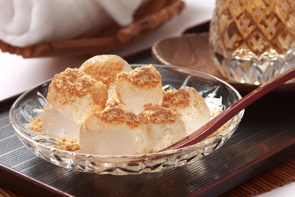 - 濡らしたスプーンで一口大にすくって取り分け、好みで黒蜜やきなこをかけて出来上がり