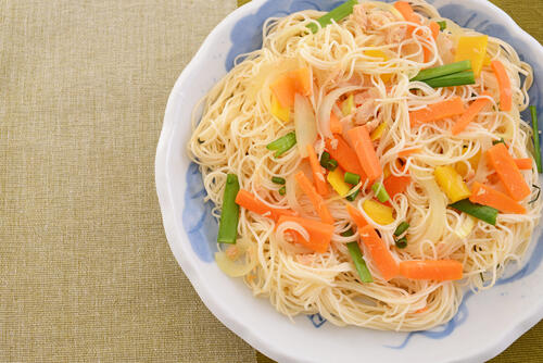 そうめんチャンプルーの材料を選ぶうえで一番重要なのは、やはりメインの具材であるそうめんである。美味しいそうめんを使えば、ほどよいモチモチ感を楽しめる質のよいそうめんチャンプルーを作ることができるのだ。