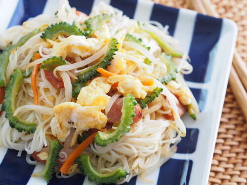 そうめんチャンプルーを時短したいのであれば、ゴーヤの下処理を前もって済ませておくとよい。ゴーヤを買ってきた段階で種やワタを抜いて切り、茹でて冷蔵保存しておけば、そうめんチャンプルーだけでなく、ゴーヤチャンプルーやゴーヤサラダなど、さまざまなゴーヤ料理に活用することができるため、効率的に調理ができる。