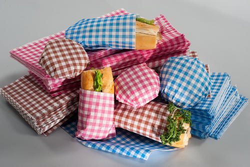上面に凝った飾りを施した場合、ラップをしてしまうとラップをはがすときに飾りまではがれてしまう心配があるだろう。そんな場合にはワックスペーパーを使うと良い。ワックスペーパーは蝋やパラフィンなどを染み込ませて、耐水性や耐湿性を持たせた紙のこと。茶色のシンプルなものからかわいい模様入りのものまでバリエーションが豊かで、100円ショップなどでも購入することができる。またラップのようにロールになっているものと、バーガー類を包むような2辺が閉じているものもある。具材たっぷりで食べていてこぼれてしまいそうな場合には、2辺が閉じているものを使うと便利。