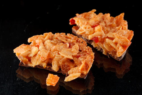 フロランタンのトッピングと言えばスライスアーモンドが定番だが、他のナッツを使っても美味しいし、ドライフルーツも加えれば彩りが美しく、別の美味しさも生まれるものだ。何種類かのドライフルーツがミックスされたものを買えば手軽だが、商品によってフルーツの配合・大きさ・甘さ加減などはさまざまである。専門店には常時、数十種類の品揃えを誇るショップもあるので、自分好みのものを組み合わせてフロランタンを作るのも面白いだろう。
