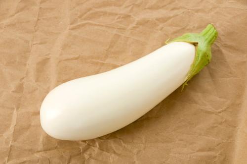白ナスとは、その名前の通り見た目が白いナスのこと。いくつかの品種があるが、日本では「ホワイトベル」という白ナスが多く出回っている。これは全長15cm程度、直径8~9cm程度であり、見た目は米ナスのような丸みを帯びていることが特徴。また、普通の紫ナスに比べて果肉が柔らかく、みずみずしさも感じられる。特に加熱調理すると「とろける」ような、上質な滑らかさを楽しめる。