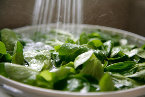 レシピには書いていないことが多いが、野菜は使う前に必ず水洗いしよう。ほうれん草や小松菜などの葉物野菜は茎の根元の部分や葉脈のところに泥が入り込みやすい。泥は流水で洗っただけでは取り除きにくいので、洗い桶に水をたっぷり張って、そこに野菜を入れて洗うとよい。洗う時は泥をあおり出すように、振りながら洗う。すると泥が水に溶け、自然と葉や根から剥がれ落ちるのである。