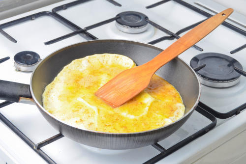 くっつきを心配して、フッ素加工のフライパンで作りたくなるオムレツだが、フランス流の少し焦げ目のついた本格オムレツを目指すのなら、鉄製のフライパンを使うことをおすすめする。鉄製のフライパンで作るときのコツは、しっかりとフライパンを熱すること。低温で作ると、どうしてもふんわり感が出ない。また、1人分のオムレツを作るのであれば、小さめのフライパンを使うとよい。
