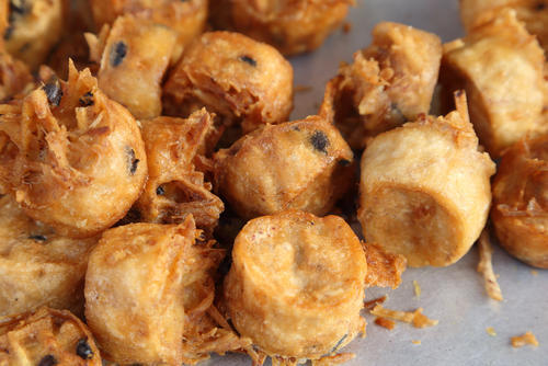 前述のフライドポテト同様、根菜フライをする場合は、下ごしらえが肝心。ごぼうやレンコンなら、酢水にさらし、しっかりとアクを抜く、里芋は大きい場合は、小さく切る、または下ゆでをしておく。それぞれ、野菜に合わせた下ごしらえをしよう。