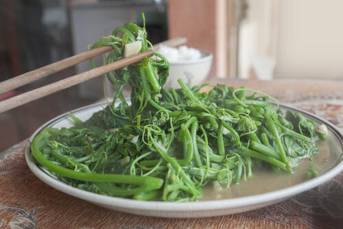 定番でしかも白飯がすすむおかず。豆苗と卵をオイスターソースで味付けをするものだ。オイスターソースはコクがあり、淡白になりがちな食材をしっかり味付けしてくれる。