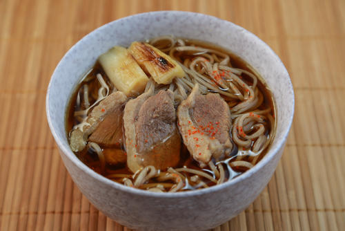 鴨南蛮は、蕎麦屋の定番メニュー。初めに使われた経緯は、定かではないが、鴨が古くから、庶民に食されてきたことが関係深いとされている。というのも現在、食肉の鳥を代表する鶏肉は、古くは超高級食材だったのだ。ここまで安価に取引されるようになったのは、ブロイラーの鶏が持ち込まれた戦後になってから。蕎麦が現在のような麺類として発展を始めたのは江戸時代。その発展とともに鴨南蛮も生まれたものだろうといわれている。当時は、野生のマガモを使っていたと考えられている。
