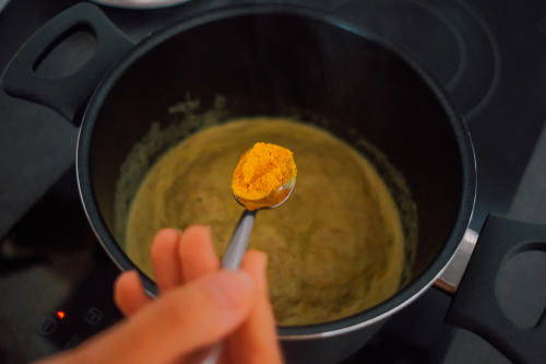 市販のカレー粉のほか、簡単に仕上げたいならカレールウを使ってもよい。ほかにも、コンソメなど好みの調味料を試してみるのもよいだろう。普段気になっているスパイスなどを加えてみても面白いかもしれない。
