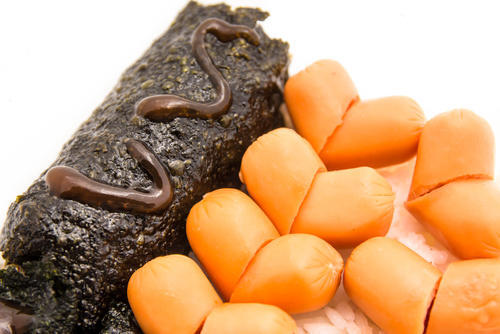 ウインナーを顔や胴体に見立てて、海苔でパーツを作り配置していくだけで楽しい飾りウインナーを作ることができる。海苔を細かくカットしたい場合には、メイクで使う眉用のハサミがおすすめ。先が細く小さいため、作業がしやすい。切り抜いた海苔をウインナーに貼り付けるときには、薄くマヨネーズをつけて糊がわりに使うと簡単に貼りつけることができる。