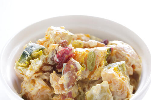 デリやカフェなどでよく売っている甘みの強いかぼちゃサラダも、実は自宅で簡単に作ることができる。もともと甘みの強いかぼちゃを使うのもよいが、そのようなかぼちゃが手元にない場合は、マヨネーズで和えたあとに砂糖を加えて味を調整するのがおすすめだ。砂糖のカロリーが気になる場合は、カロリーオフをしている甘味料を使うとよいだろう。