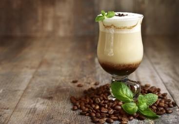 - 濃いめのコーヒー、またはエスプレッソを淹れ、別のグラスに注ぎ、上から4.のミントで香り付けした冷たい牛乳を注ぐ。この時、ミルクフォーマー(牛乳を泡の状態にするもの)があれば、泡状にしてから注ぐと、コーヒーとミルクの2層になる。