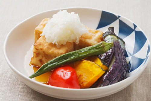 鶏ひき肉で、カロリーオフ。コクのある八方だしが厚揚げと茄子を風味豊かに引き立てる。