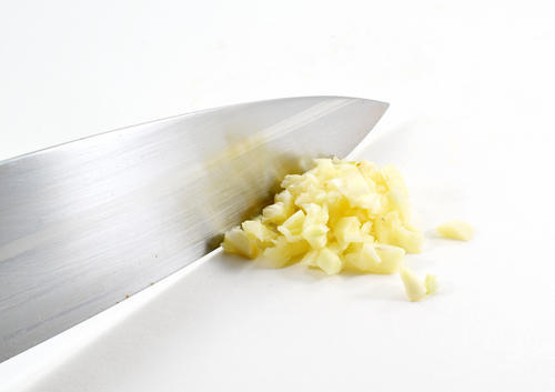 - にんにくをみじん切りにする