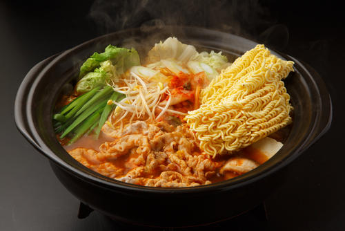 水・酒・鶏ガラスープの素・キムチ鍋の素を合わせればキムチ鍋ふうのだしが簡単に作れる。白菜やきのこ類、豆腐など、ほかの食材との相性もよい。キムチを入れるとよりコクのある仕上がりになる。また、おろしにんにくや溶けるチーズなどをプラスしても美味しくいただける。
