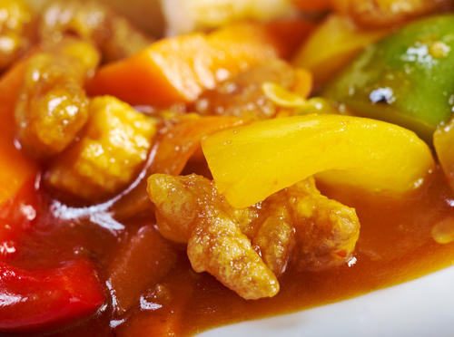 甘酢あんの合わせ方も、好みによって自在だ。まず酢だが、私たち日本人にとっては米酢が一般的だろう。酢豚にも米酢を使ってよいのだが、こっくりとした味が好みなら、米酢の中でも玄米黒酢を使ってみるとよい。原料の米に糠が含まれている分、普通の米酢よりもアミノ酸の含有量が多く、味もどっしりとしている。角切りの大きな肉を使い、こってりした味に仕上げる酢豚には最適な酢だ。なお、私たちがよく知る野菜たっぷりの酢豚は広東料理だが、北京料理で酢豚といえば、野菜なしで肉のみを黒酢で仕上げたものがスタンダードとなる。