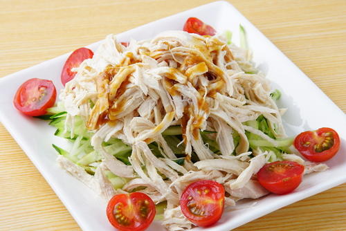 鶏ささみ肉の料理で代表的なのは棒棒鶏(バンバンジー)ではないだろうか。肉に含まれている脂肪が少ないため、脂っこさを感じず冷たい料理でも美味しく食べられる。肉の繊維をほぐして小さく割き、サラダ、パスタなどの料理に使おう。