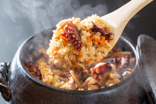 タコ飯を作るうえでまず重要になってくるのは、メインの具材であるタコの選び方だ。鮮度が高い美味しいタコを使用すれば、質の高いタコ飯を作ることができる。一般的にタコはメスよりもオスのほうがやわらかく、噛みきりやすいといわれている。反対に、オスのタコは足がやや硬く、強い弾力を感じることができるのだ。