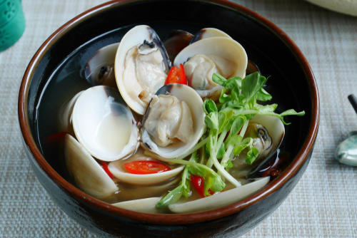酒蒸しも、あさりを代表する料理だ。酒蒸しはあさりだけで作るものと思っている人も多いようだが、実はほかの具材を一緒に蒸し上げると、あさりの旨みを吸って、さらに旨くなる。特に野菜は相性がよい。おすすめはキャベツやきのこ、ブロッコリー、じゃがいもなど。残り野菜でもぐんと旨くなる。春雨を入れて汁を吸わせてもよいだろう。