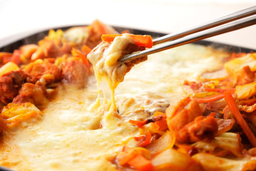 本場のタッカルビは、なかなかの辛さだが、チーズを加えることで辛みがまろやかになり、日本人にも食べやすくなっている。とろとろに溶けたチーズが「インスタ映え」するということから、若い女性を中心に一大ブームを巻き起こし、いまではすっかり定番料理のひとつとなっている。