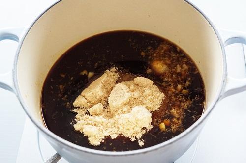 - おろししょうが、醤油、酒、みりん、砂糖を合わせたタレを2に入れ、よくもむ