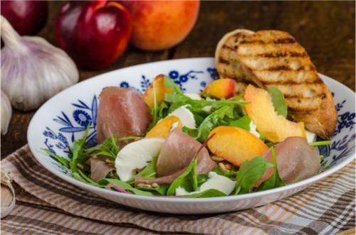 近年のフルーツ×サラダの火付け役となったのが、桃とモッツァレラのサラダ。シンプルに桃とモッツァレラを合わせただけなのに、なんとも美味しく見た目も美しい。みずみずしい桃と濃厚なチーズのバランスは絶妙で、虜になる人が続出した。見栄えがするのでSNSを通じてさらに人気が広がった。