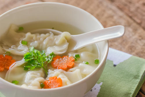 もう1つは、ビールなどと一緒に酢豚を食べるケースだ。お酒を飲みながら食事する人の中には、白米は食べないという場合も多いようだ。カロリーオーバーを避けるためにも、この方針は正しいのだが、おかずとお酒だけではやや物足りないかもしれない。この場合におすすめなのは、ワンタンスープのようなボリュームのある汁物で食事の最後を締めくくることだ。ワンタンの小麦粉によって「主食を食べた感」が味わえるため、お酒を飲む人も満足して食事を終えられることだろう。また、小麦粉や米粉を丸めた団子を入れた、すいとんなどを汁物に持ってくれば、満足度もさらに高くなるだろう。もっと手軽にするならば、コーンや野菜のポタージュに中華風に片栗粉でとろみをつけた汁物はどうだろう。この場合も、ほんの少しの片栗粉を加えることによって腹持ちが格段によくなり、満腹感を得られるのがよい点だ。