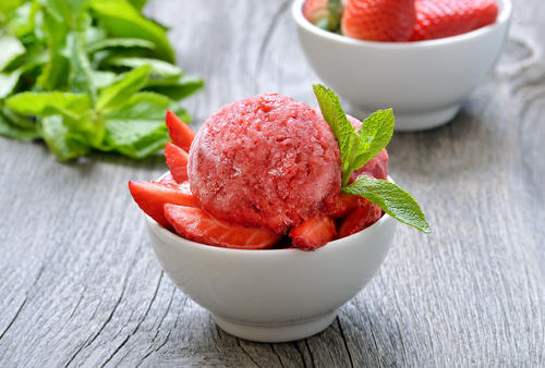 シャーベットには、さまざまなレシピがある。材料の一部に牛乳を使う場合もあるが、家庭で簡単に作るには、材料は好みのフルーツと水のほか、砂糖とレモン汁くらいで十分だ。もっと簡単な方法としては、完熟の柿やマンゴーなどを小さく切って冷凍し、器に盛り付けるだけでもよい。完熟であれば糖分を加えなくても、自然のフルーツの甘みだけで美味しく感じられる。おやつとして食べるには少し物足りないかもしれないが、酢豚をメインとする食事のデザートとしては、甘過ぎないのもかえってよいものだ。柿やマンゴーのほかに、イチジクやバナナなども向いている。やや熟れ過ぎてしまい、そのまま供するのがためらわれるフルーツの救済策としても、シャーベットにするのはおすすめだ。初めて作るときは、あまりなじみのないフルーツは避け、リンゴ、ミカン、ブドウ、イチゴなどのスタンダードなフルーツを用いれば失敗はないだろう。