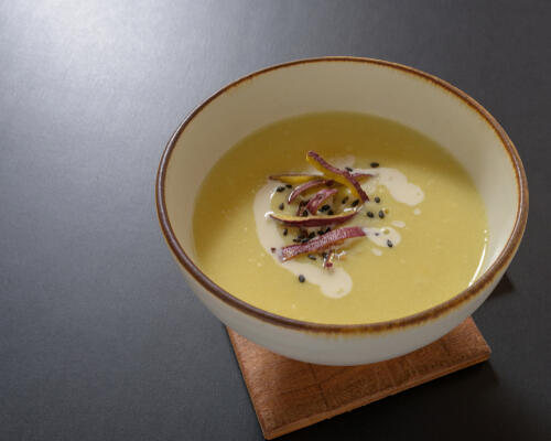 紅はるかは水分が多めでねっとりとした食感が特徴のさつまいも。甘みが強く、加熱することで甘さがより増すのも特徴。クリーミーな食感なので、ポタージュに使う乳製品との相性もバツグンだ。
