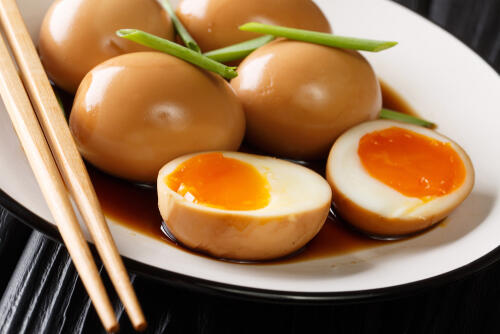 ラーメンのトッピングとしても定番の茶色い味付け卵は、見ためから想像できる通り甘辛い味が特徴だ。しょうゆや砂糖、出汁などで作られた漬けタレで味付けされている。また、家で作る際にはめんつゆを漬けタレとして使用する簡単なレシピも多い。