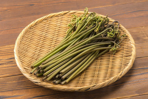 春を告げる山菜として知られるわらび。「さわらび」「わらびな」とも呼ばれるシダ植物である。古くは万葉集の歌にも詠われるなど、日本人にはなじみ深い山菜のひとつ。わらびは、春先に出てくる若芽の部分が食用として扱われる。大体15~20cmほどの長さに到達するタイミングが食べごろだ。わらびの地下茎に含まれるデンプンは、わらび餅の原材料であるわらび粉となる。本物のわらび粉で作られるわらび餅は、もっちりとした独特の食感が魅力。わらび粉を作るには大変な手間を要するため、市販のわらび餅のほとんどがじゃがいもやタピオカのデンプンで作られている。