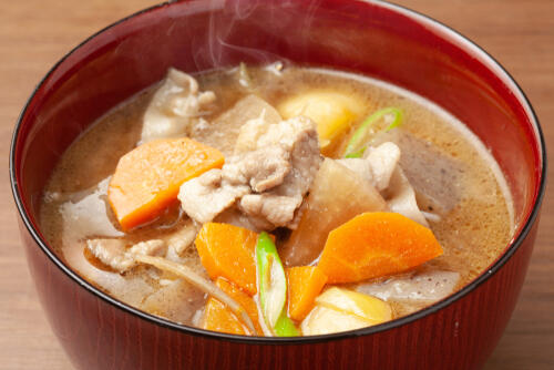 豚肉や根菜、ネギなどをたっぷりと入れたボリュームのある味噌汁に卵を加えればさらに満足感がアップする。ゴロゴロと野菜を入れて作るなら、落とし卵を加えるのがおすすめ。溶き卵を加えてしまうとほかの野菜に卵が負けてぼやけてしまうので、しっかりと存在感のある落とし卵を加えて作ってみよう。豚肉や鶏肉などの肉類を加えれば、ごはんのおかずとしても十分な料理になる。ごま油を加えてコクを出してみるのもよいだろう。味噌汁には根菜や葉物野菜などいろいろな具材が合わせられるため、冷蔵庫に中途半端な野菜が残っているときに作るのもおすすめだ。